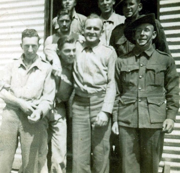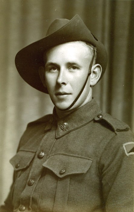 He enlisted in the AIF on 28 March 1941. He didn't enlist earlier as he felt that as an only child, it would be unfair on his parents. He waited until he turned 21. After training at Puckapunyal for several months, he sailed on The Queen Mary for the Middle East on 28 June 1941. After 28 days travelling he arrived in Palestine on 27 July where he undertook two months of hard training. He then spent the next 555 days in various parts of the Middle East. After returning to Australia he spent 775 days training in Queensland before spending 145 days on the Borneo campaign. He was discharged on 10 September 1945 after 1608 days of service.